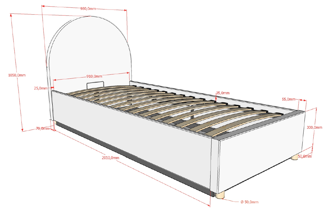LASTE ÜHEKOHALINE VOODI MOON ROOSA 90x200CM