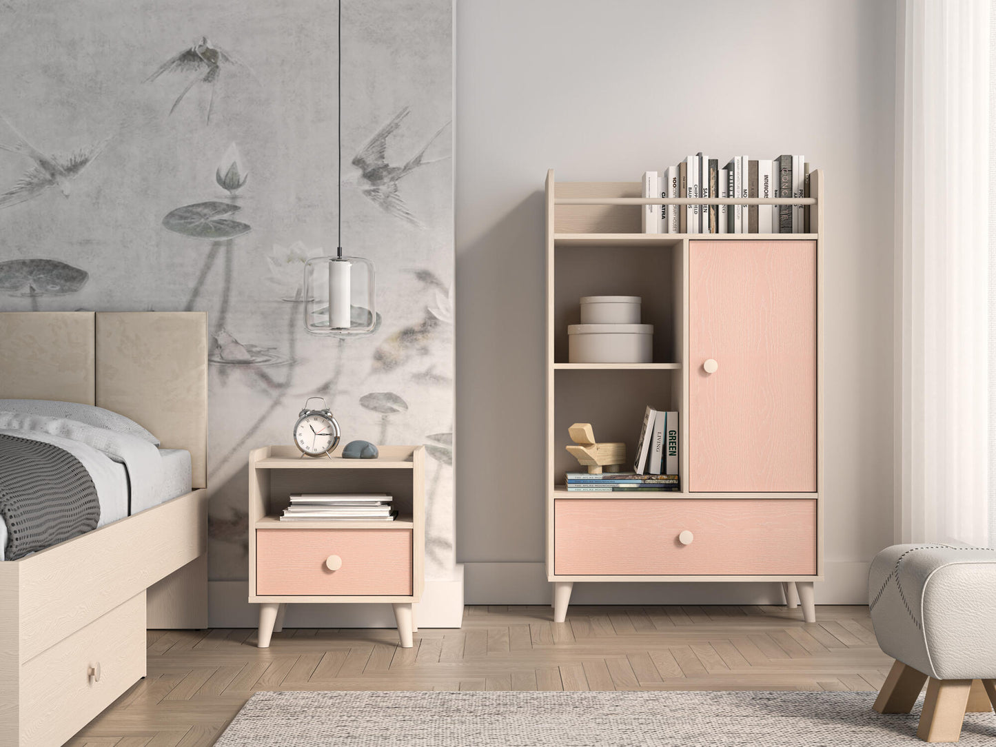 NACHTTISCH MEVEL ROSA & BEIGE 45CM