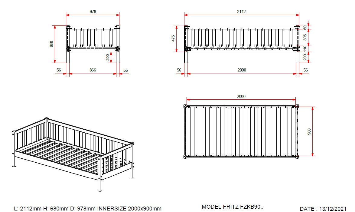 KINDER-EINZELBETT FRITZ WEISS 90x200CM