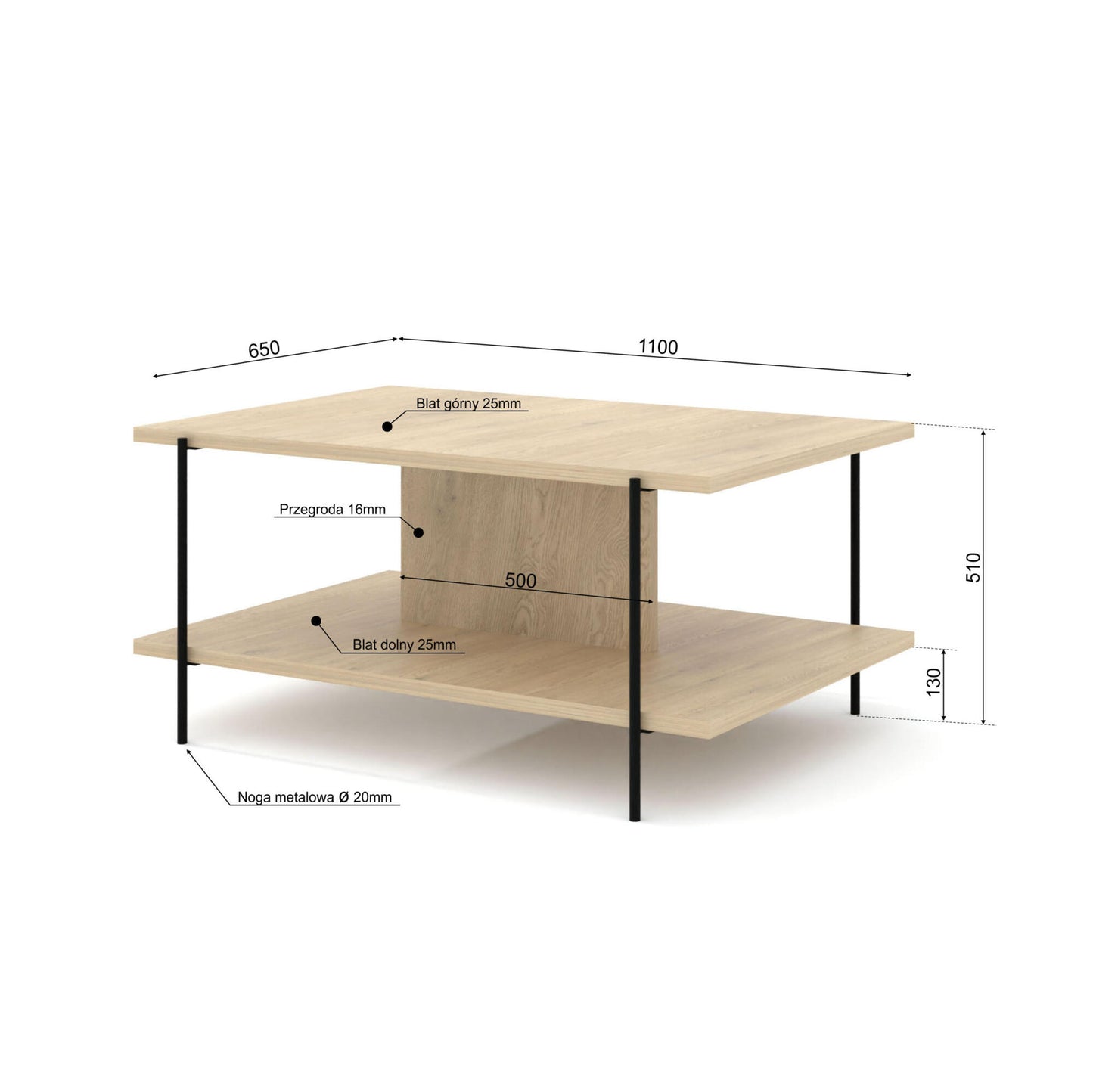 COUCHTISCH DRAGONFLY EICHE & SCHWARZ 110CM