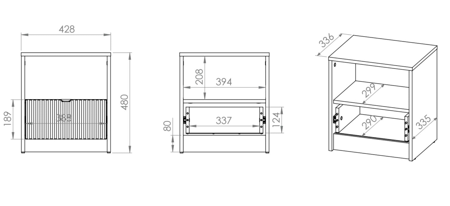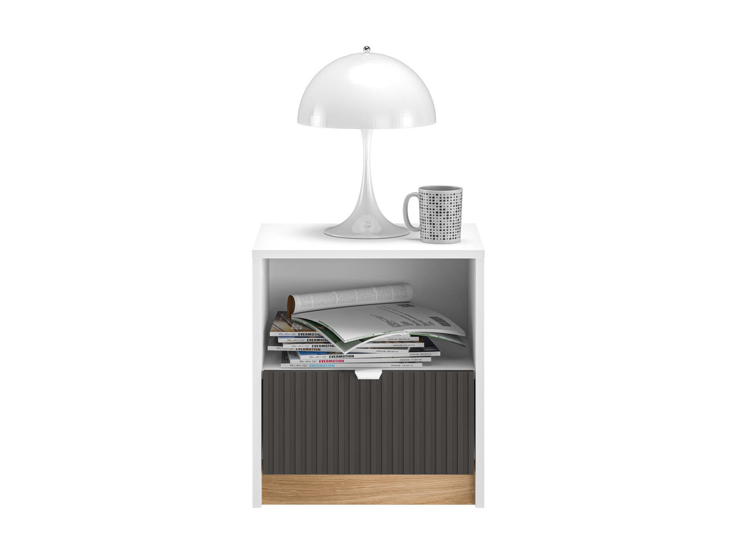 NACHTTISCH TORINO GRAPHIT & WEISS & EICHE 43CM