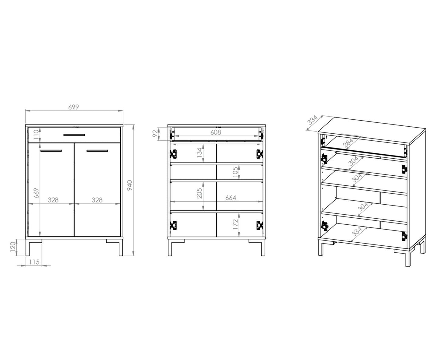 SHOE CABINET NEVIO OAK & BLACK 70CM