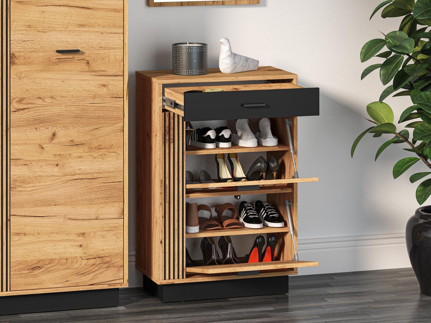 SHOE CABINET VASCO OAK & BLACK 60CM