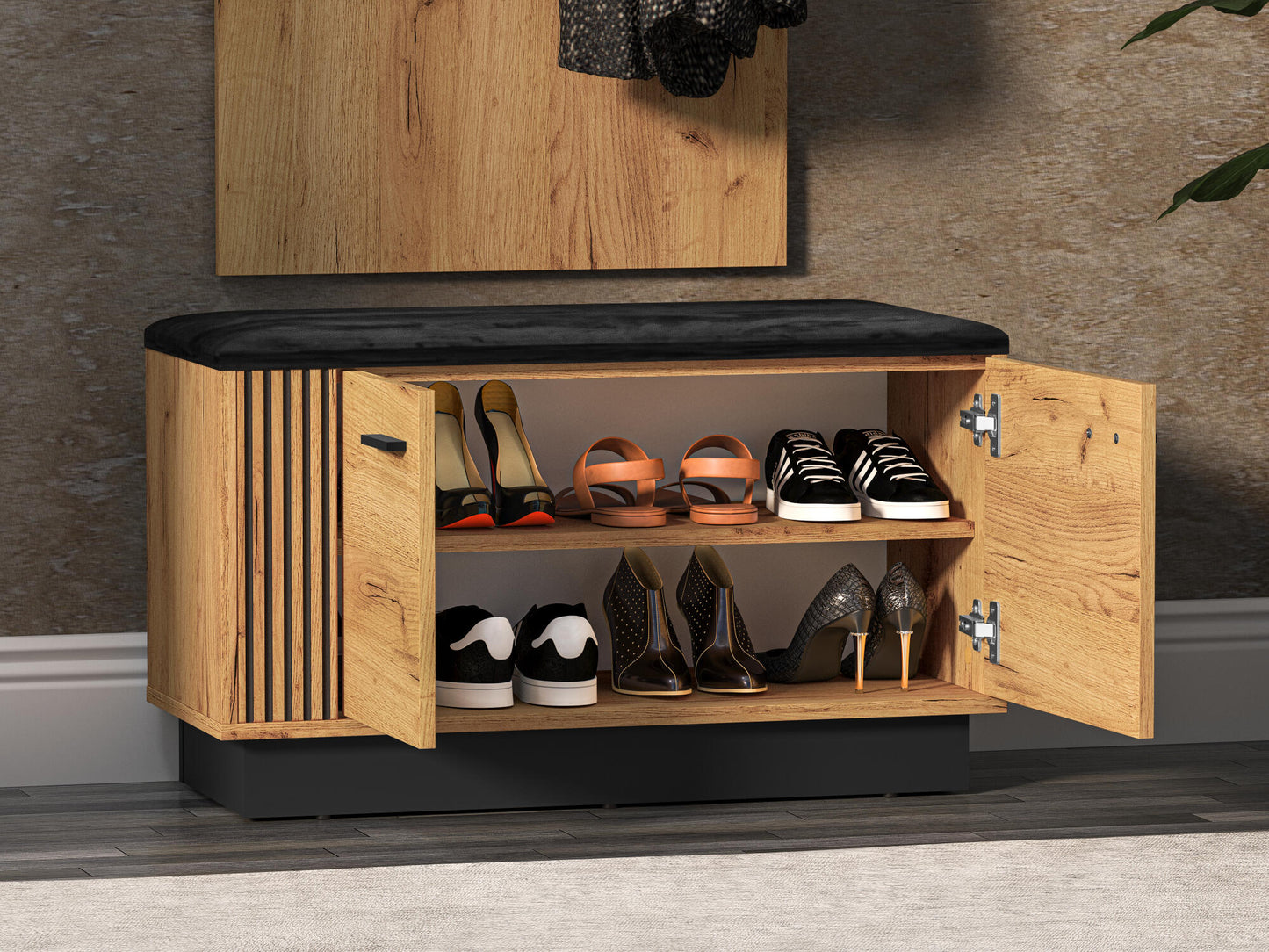 SHOE CABINET VASCO OAK & BLACK 80CM