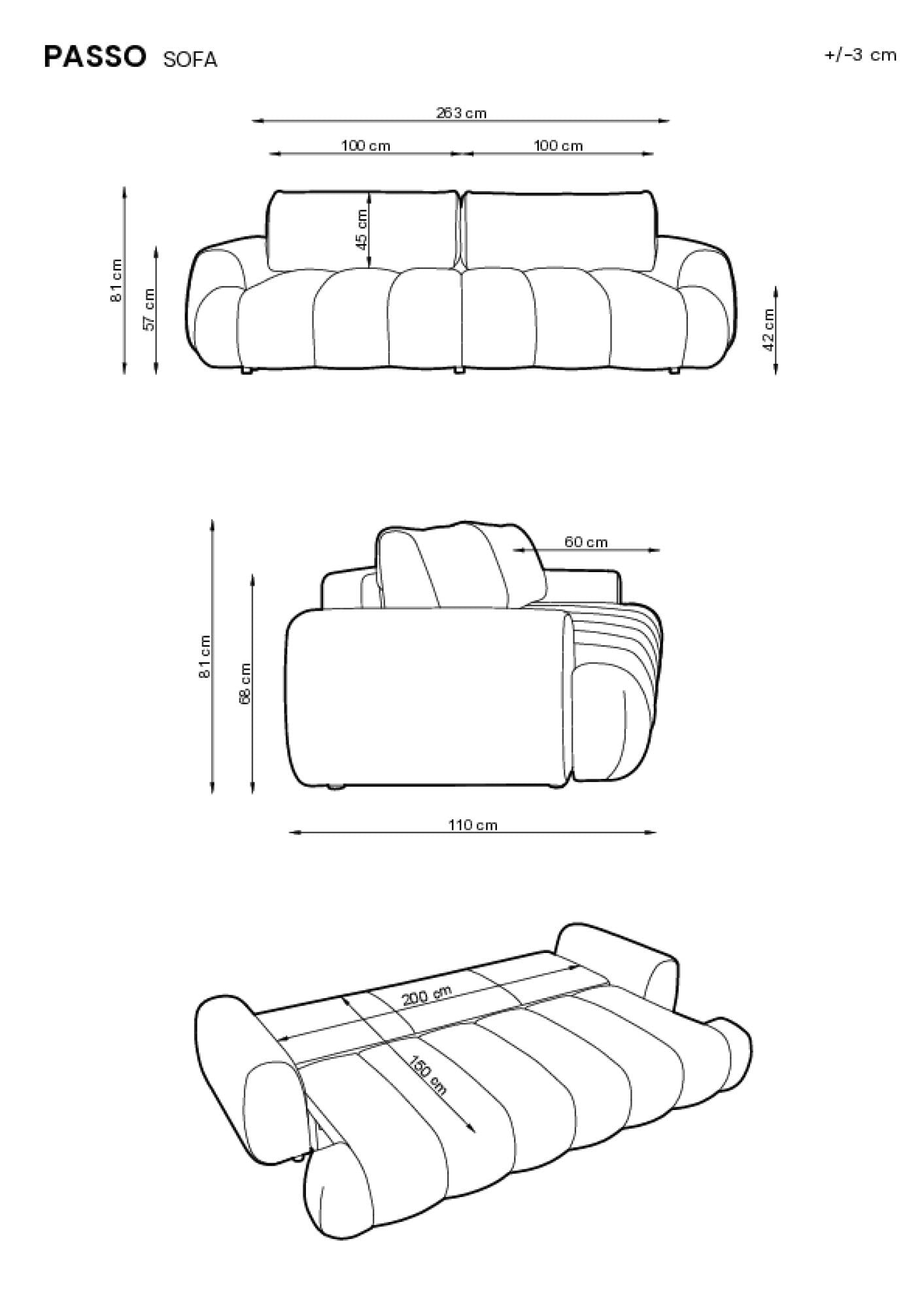 SOFA PASSO LIGHT GREEN & BLACK 263CM