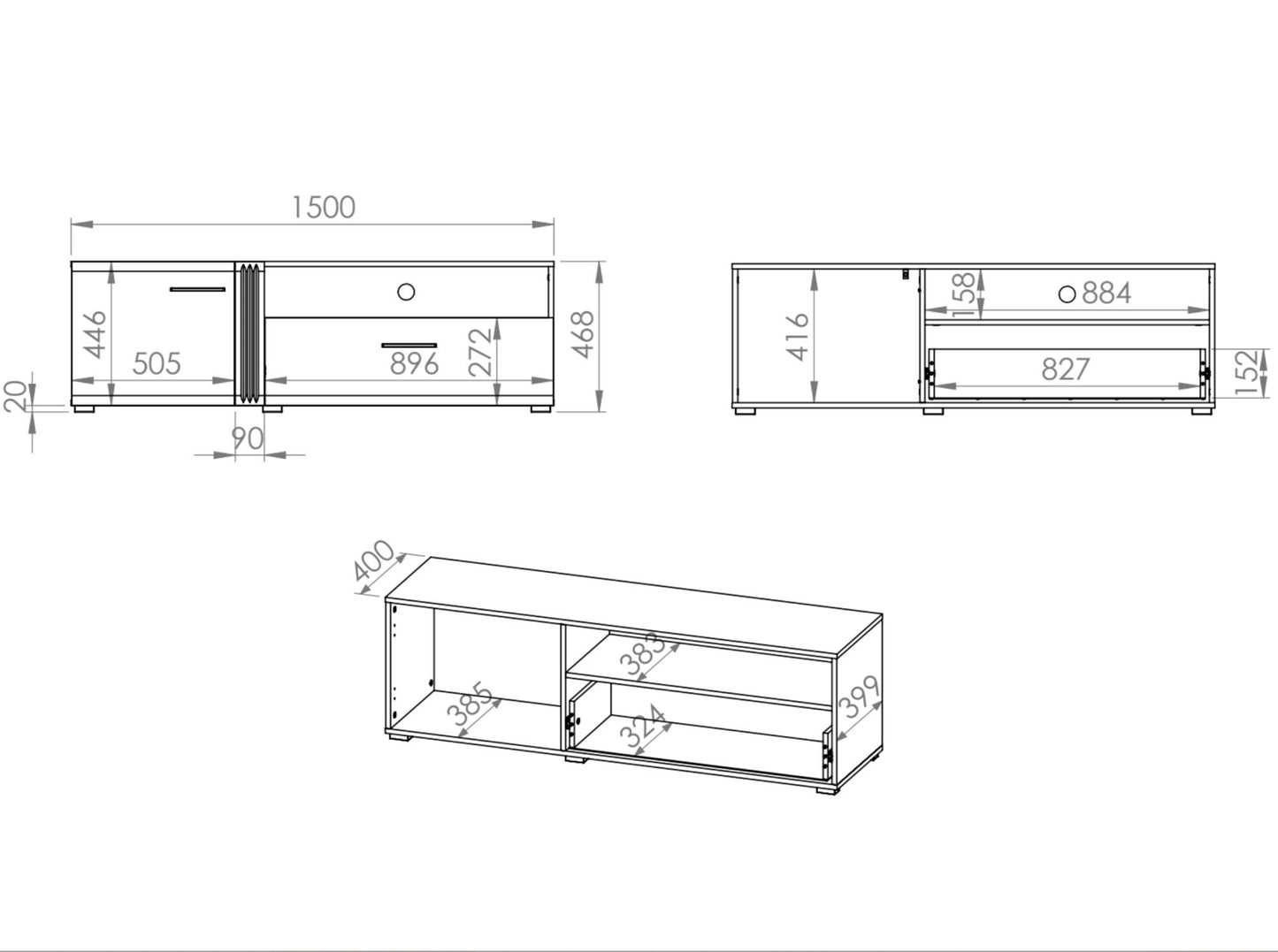 TV STAND ADAGIO OAK & GLOSSY PURE WHITE 150CM