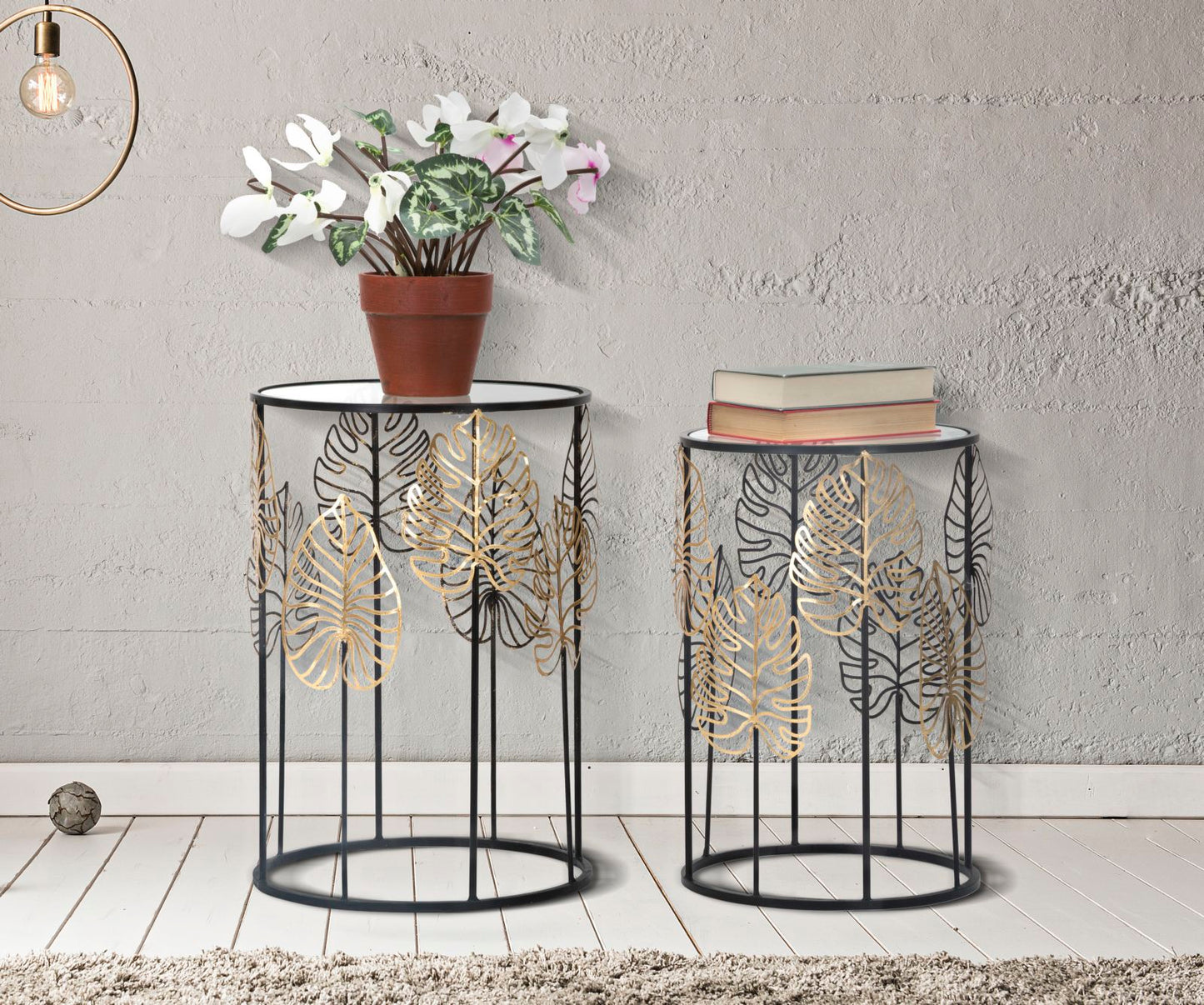 COFFEE TABLE FOGLIE BLACK 38CM (2 PCE)