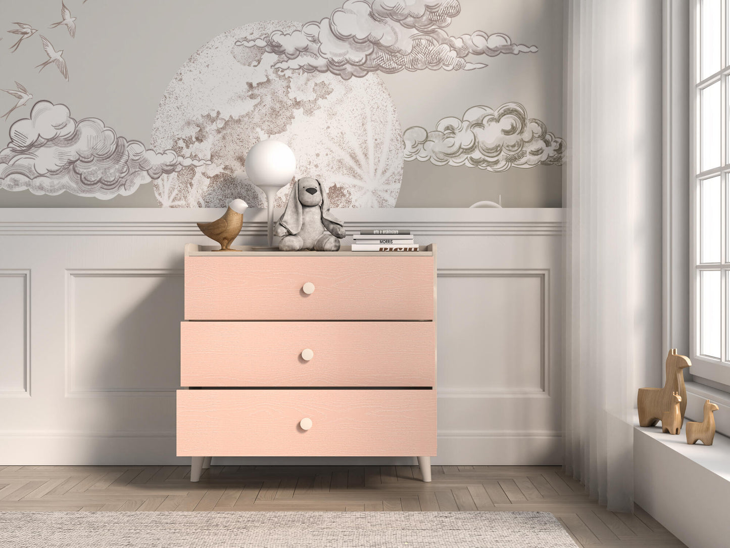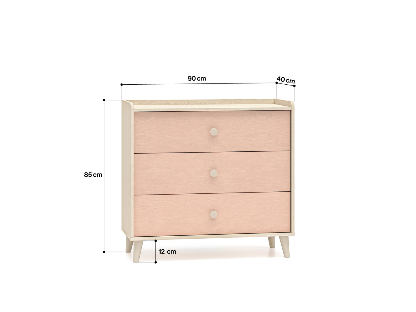 CHEST OF DRAWERS MEVEL PINK & BEIGE 90CM