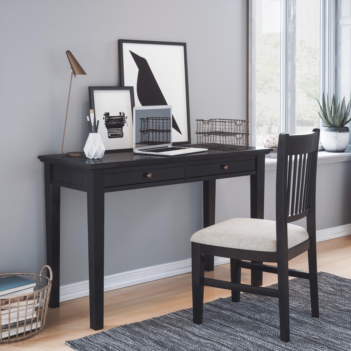 DINING ROOM CHAIR AVOLA BLACK & BEIGE 46CM