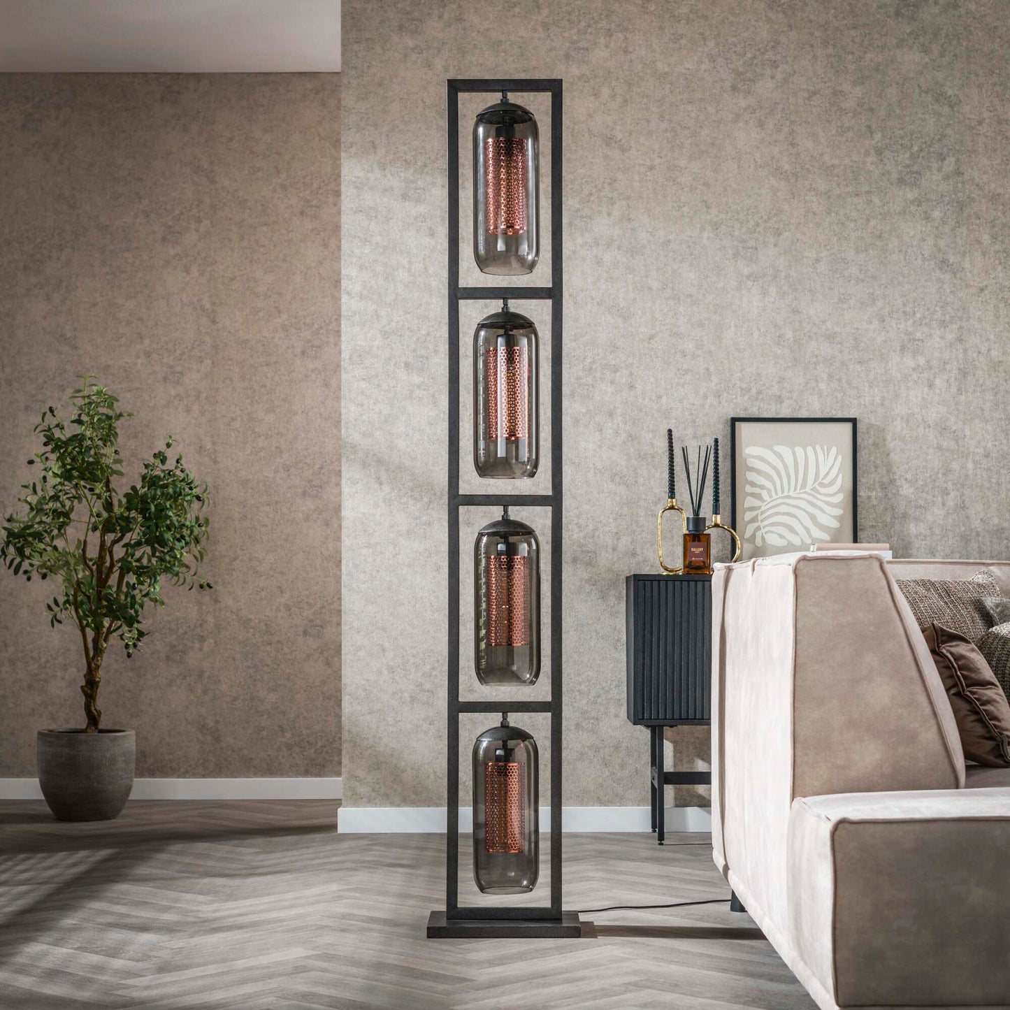 FLOOR LAMP SMOKE BLACK & GLASS BLACK & COPPER 34CM