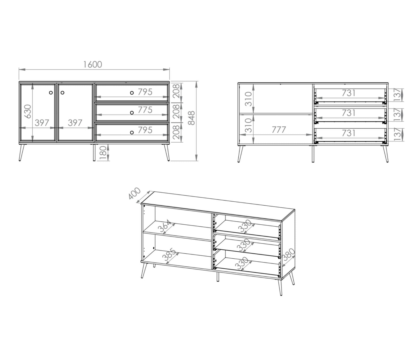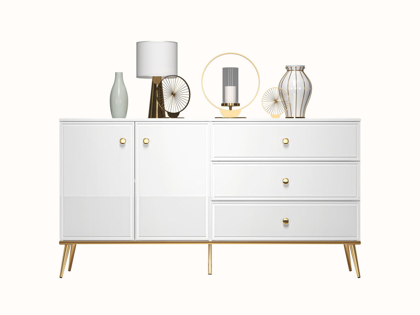 SIDEBOARD GOLDIN GLOSSY PURE WHITE & GOLD 160CM