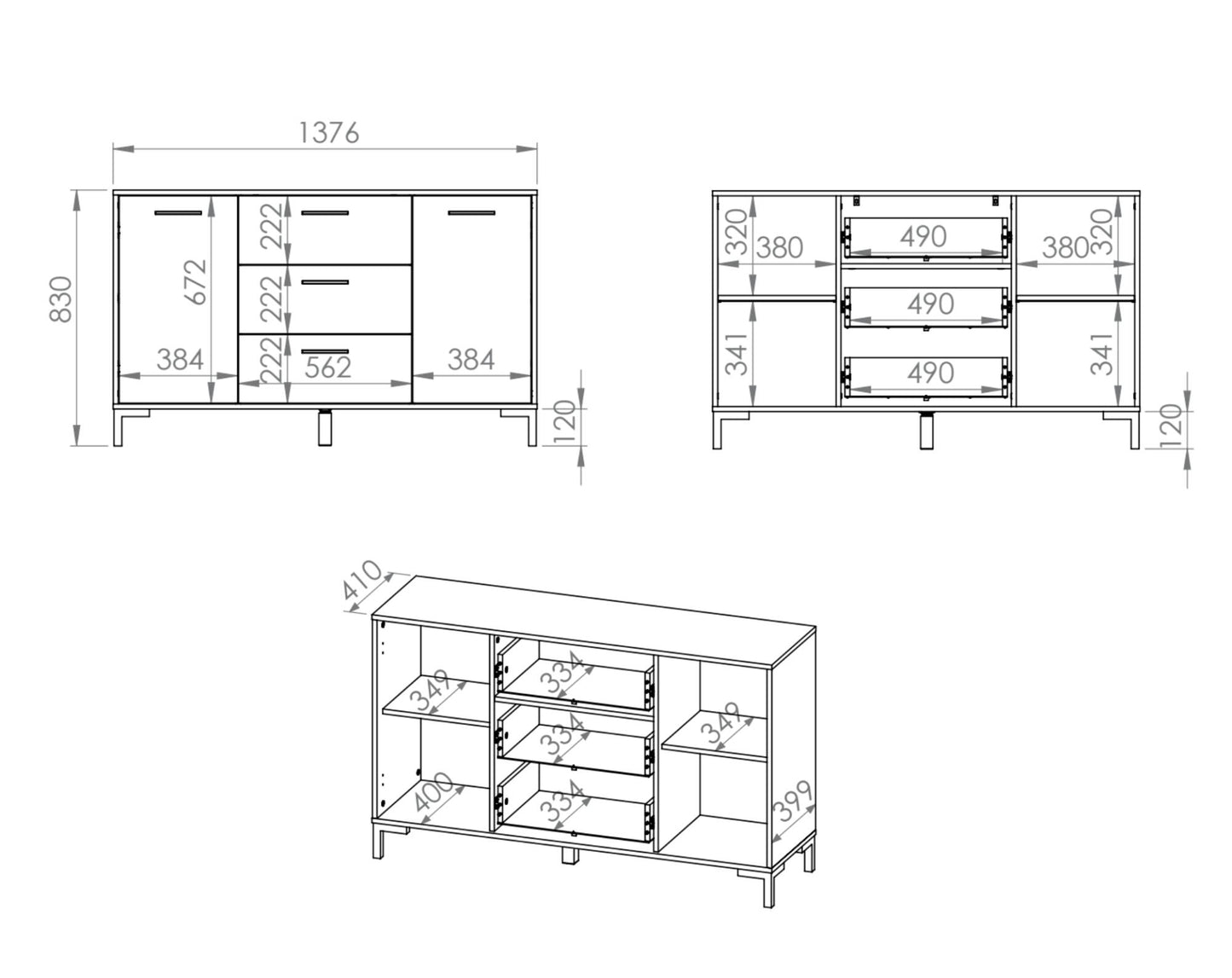 SIDEBOARD NEVIO OAK & BLACK 138CM