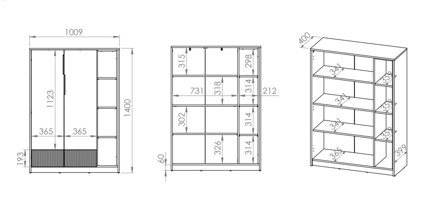 SIDEBOARD TORINO GRAPHITE & WHITE & OAK 101CM