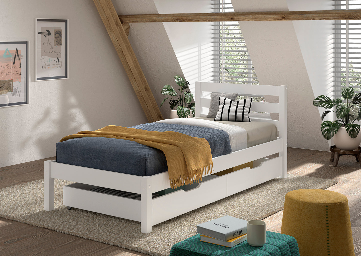 KIDS SINGLE BED PINO WHITE 90x200CM