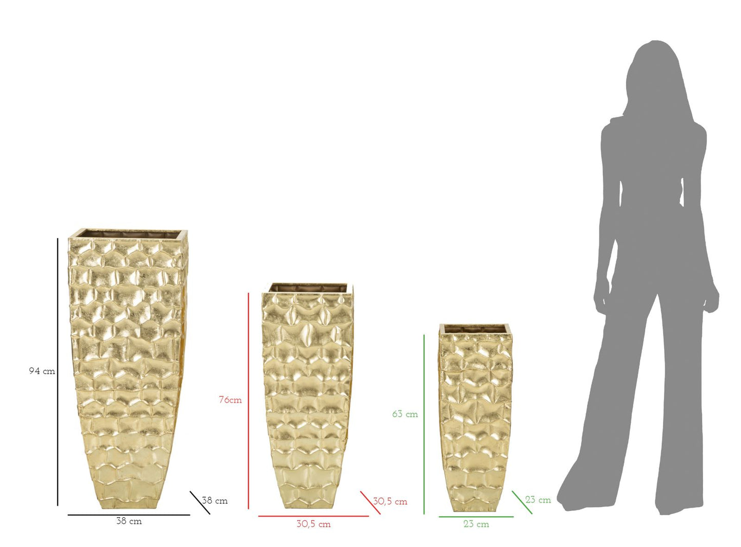VASE GLOTY GOLD 38CM (3 PCE)