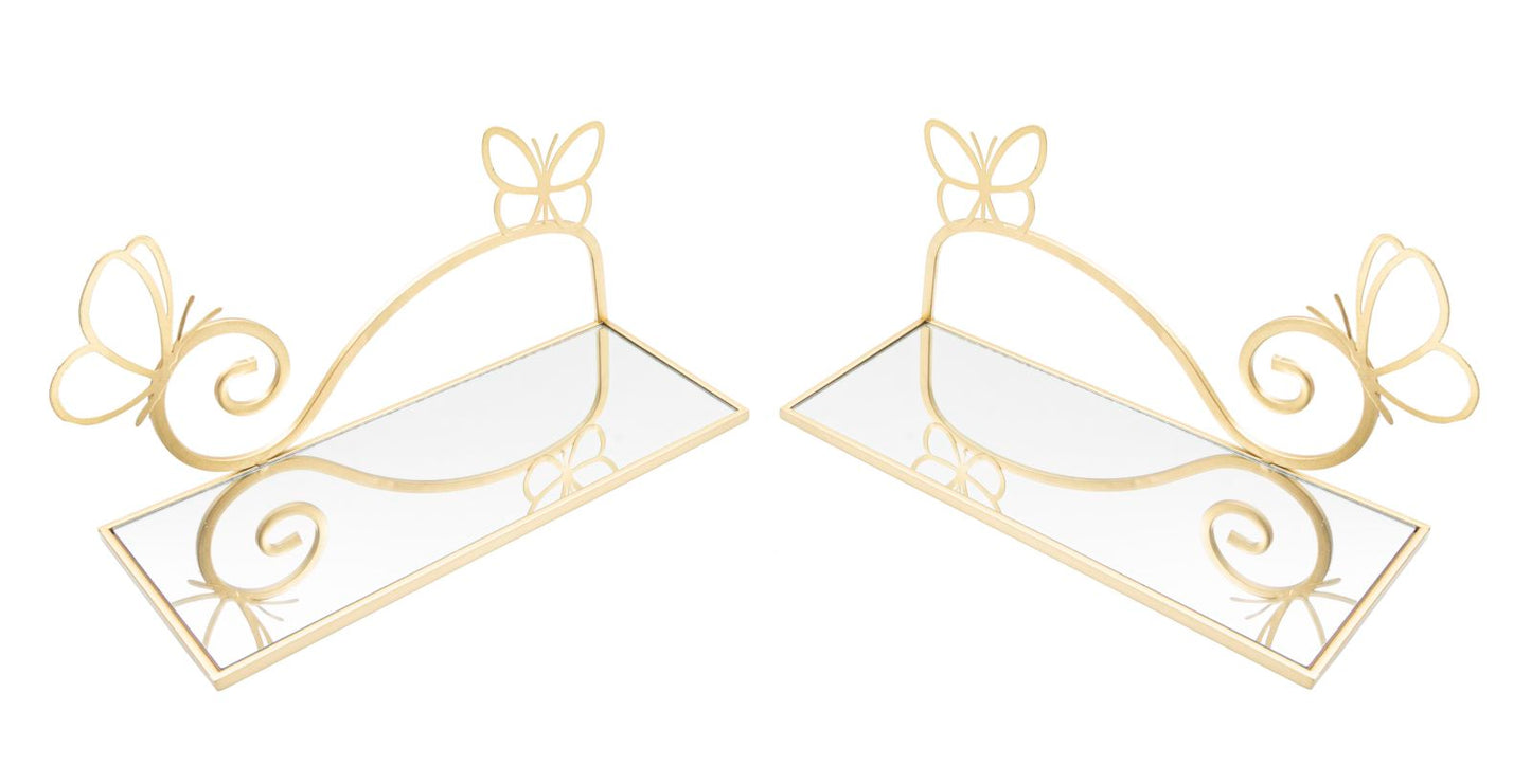 WALL SHELF BUTTERFLY GOLD 42CM (2 PCE)