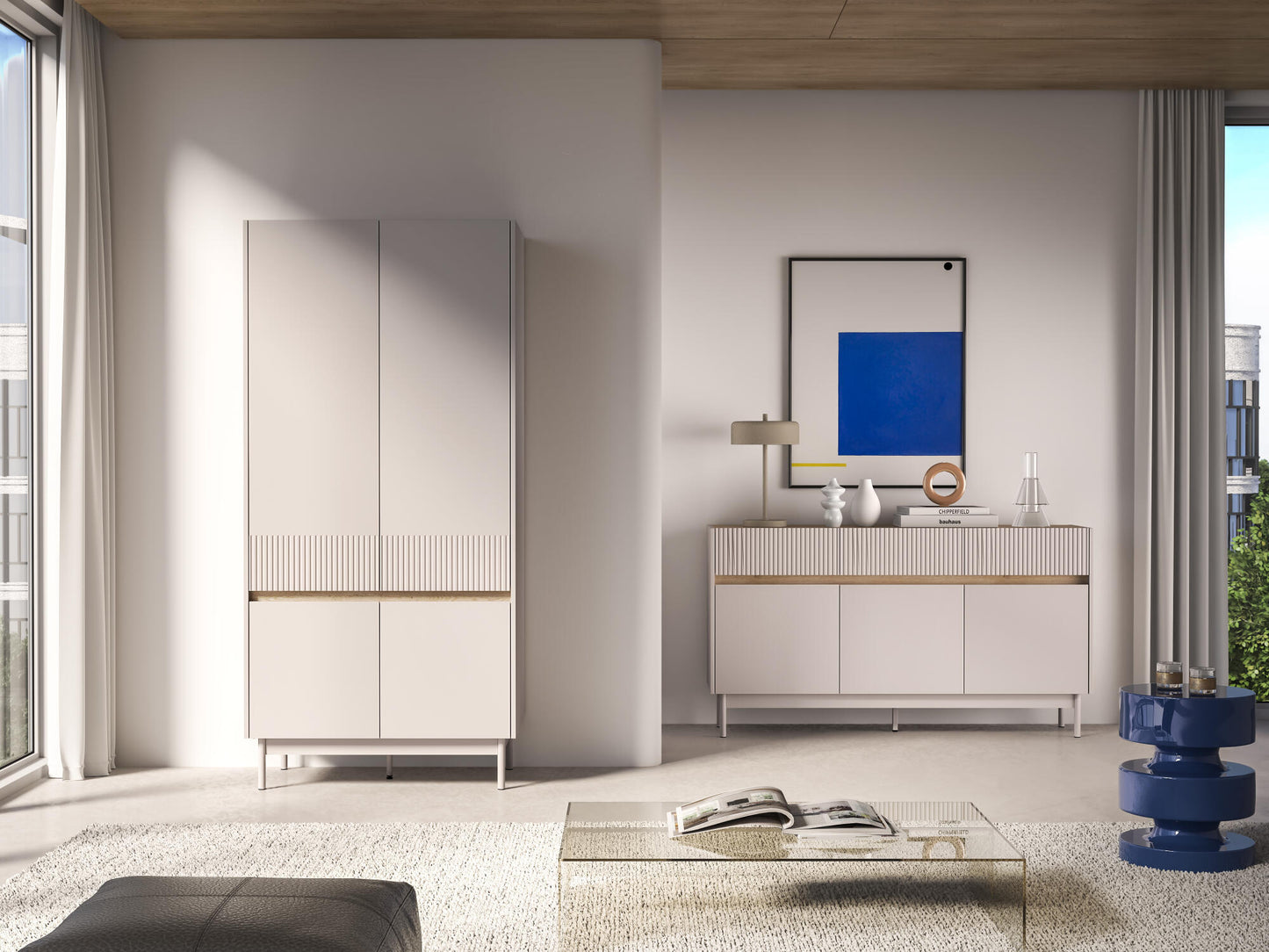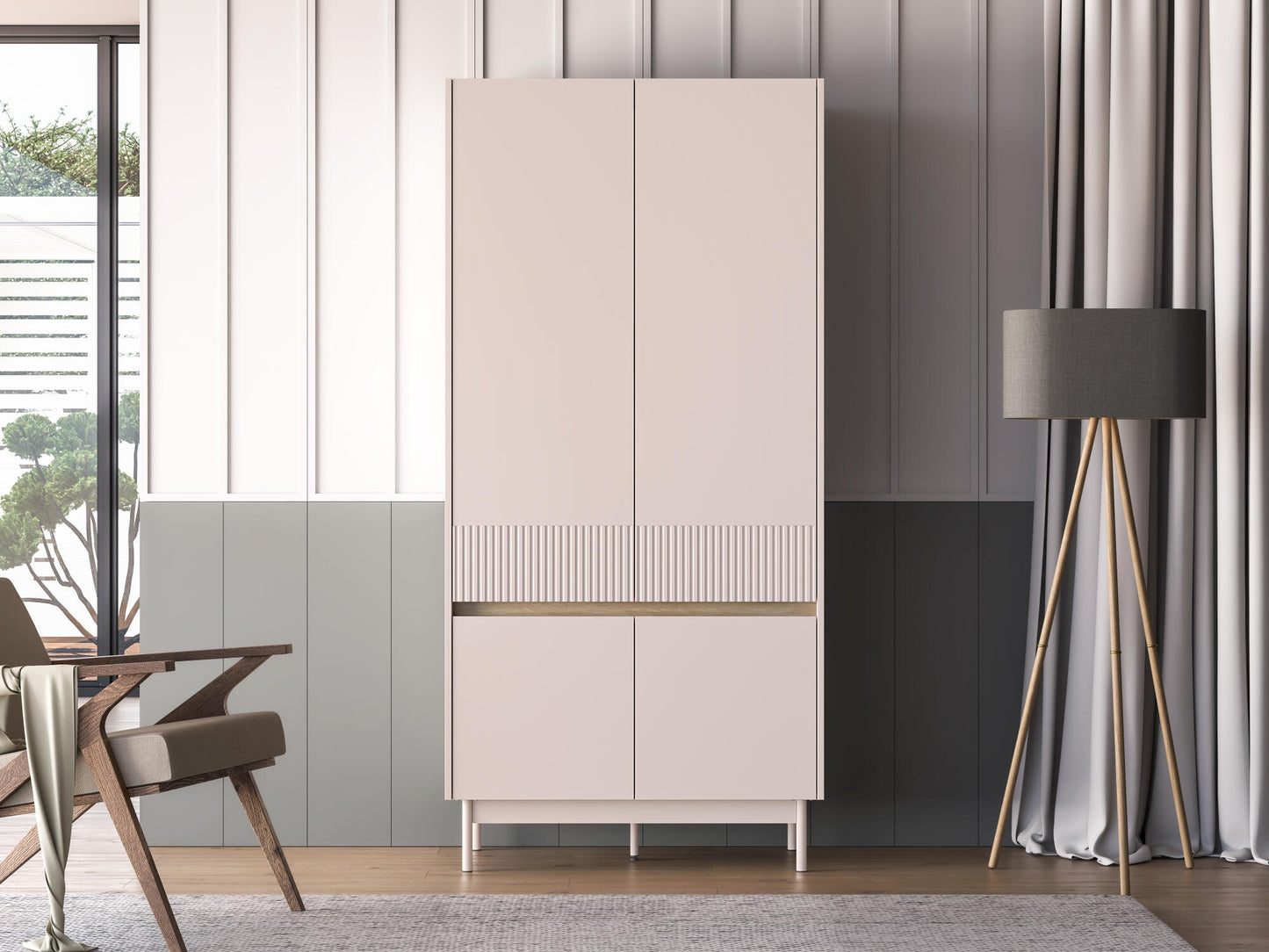 WARDROBE DUNEA OAK & BEIGE 92CM