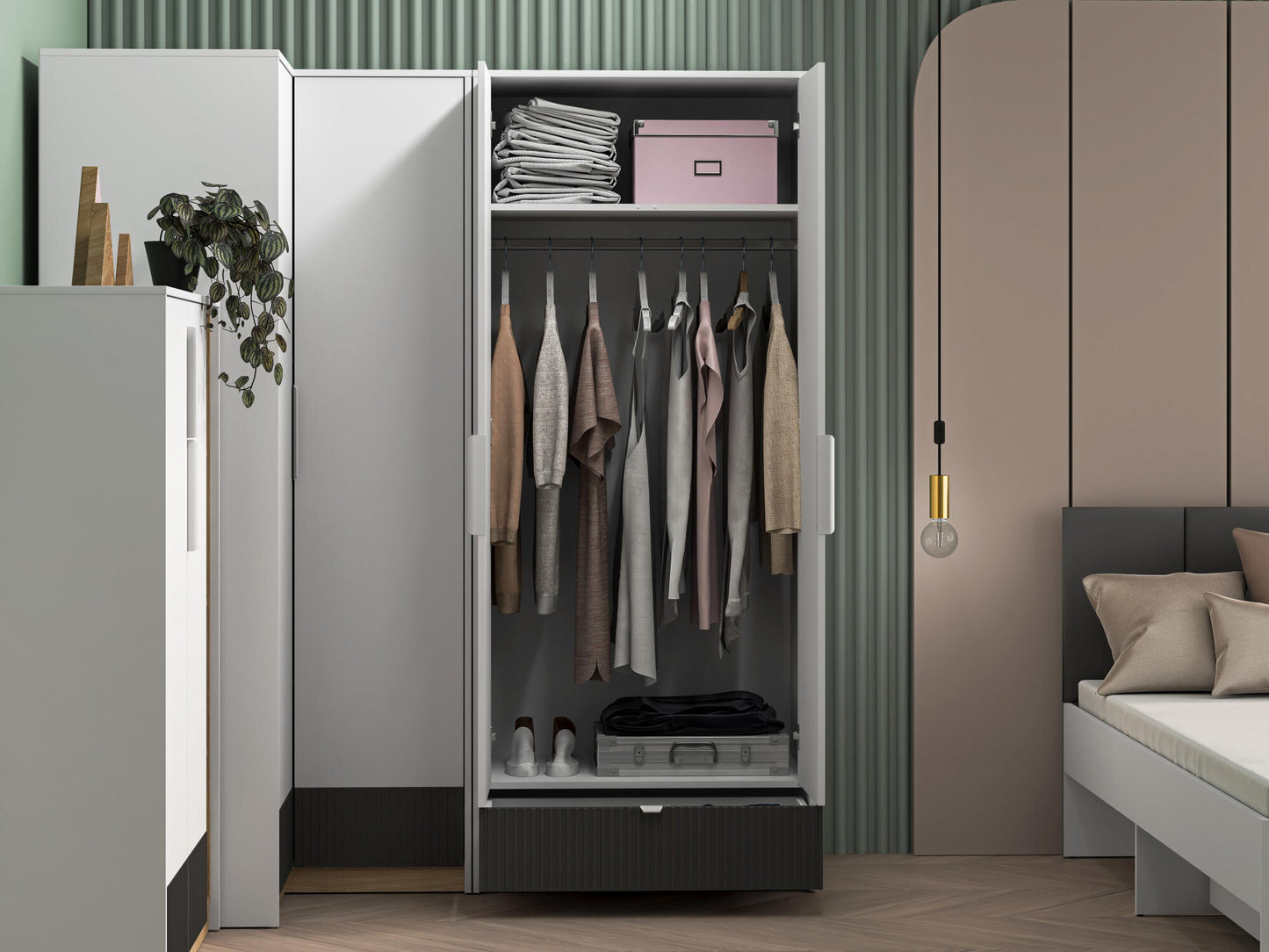 WARDROBE TORINO GRAPHITE & WHITE & OAK 82CM