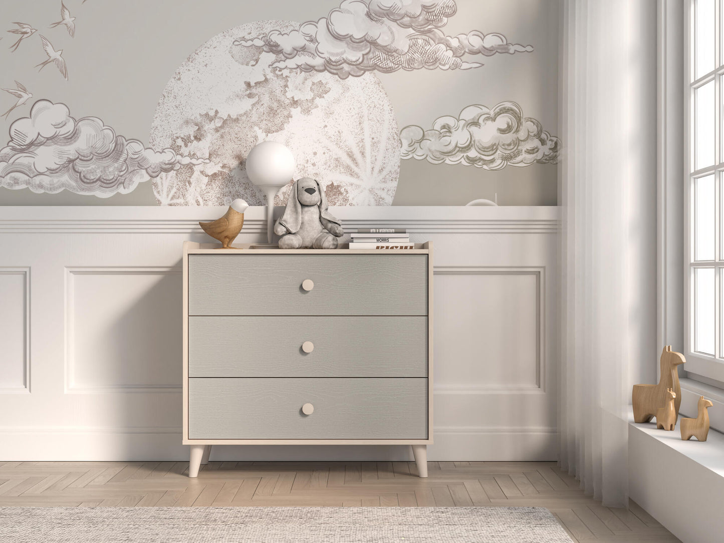 CHEST OF DRAWERS MEVEL GREY & BEIGE 90CM