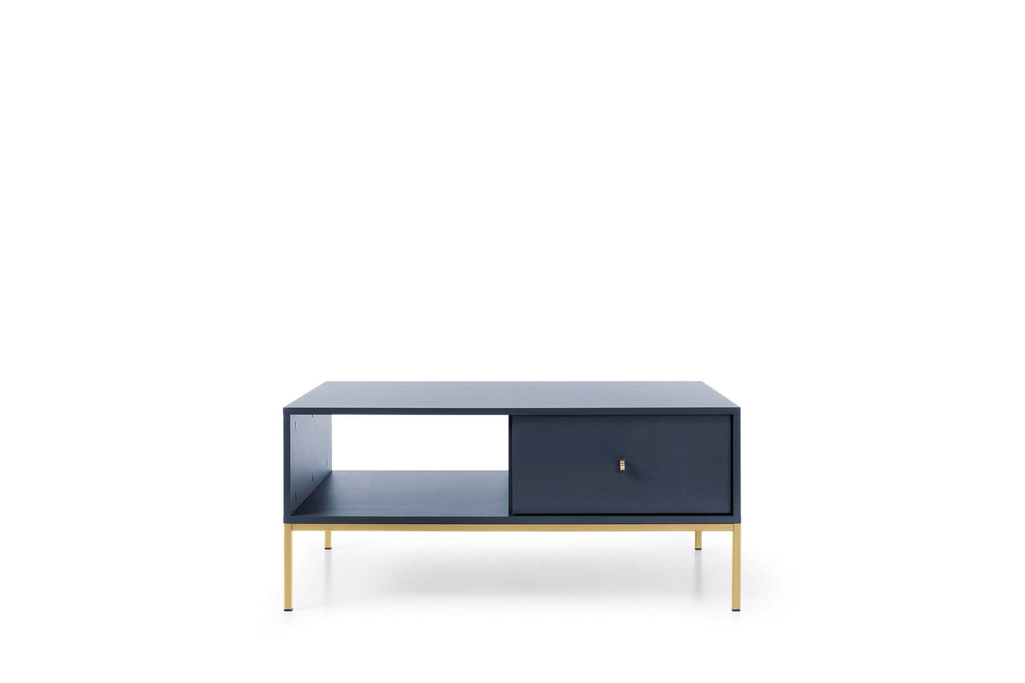 MONO kohvilaua julge tumesinine viimistlus koos glamuursete kuldsete detailidega loob modernse ja elegantse ilme, mis täiustab iga interjööri.