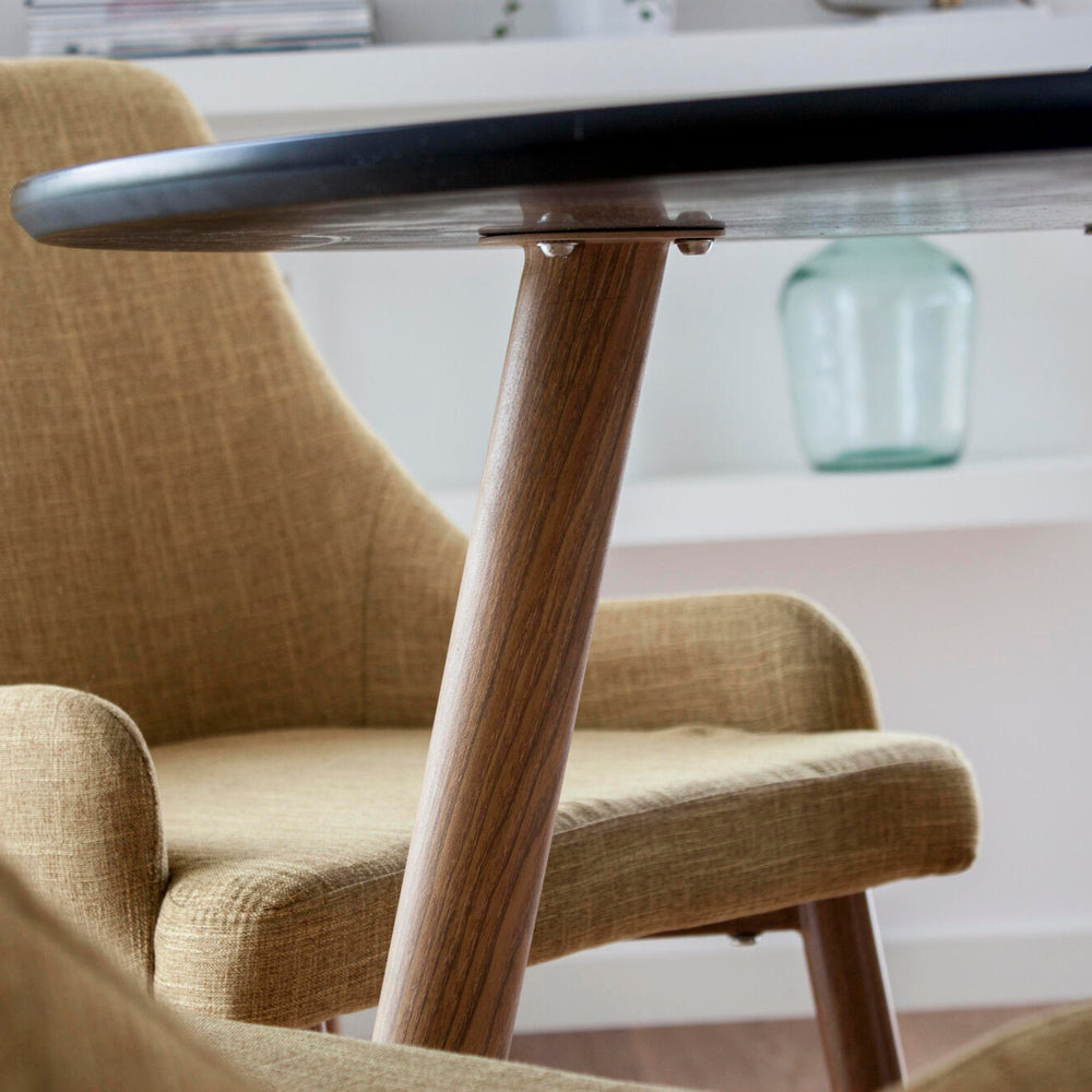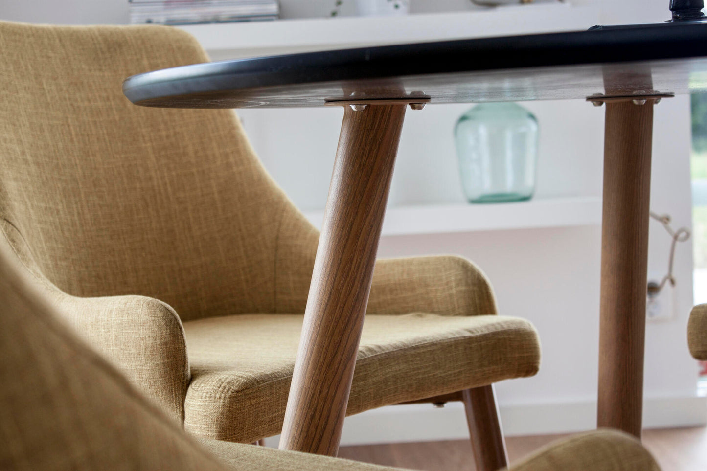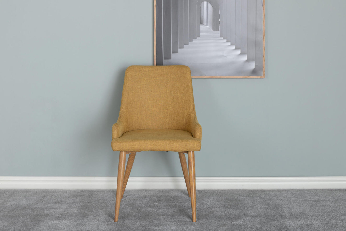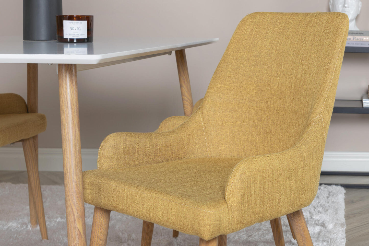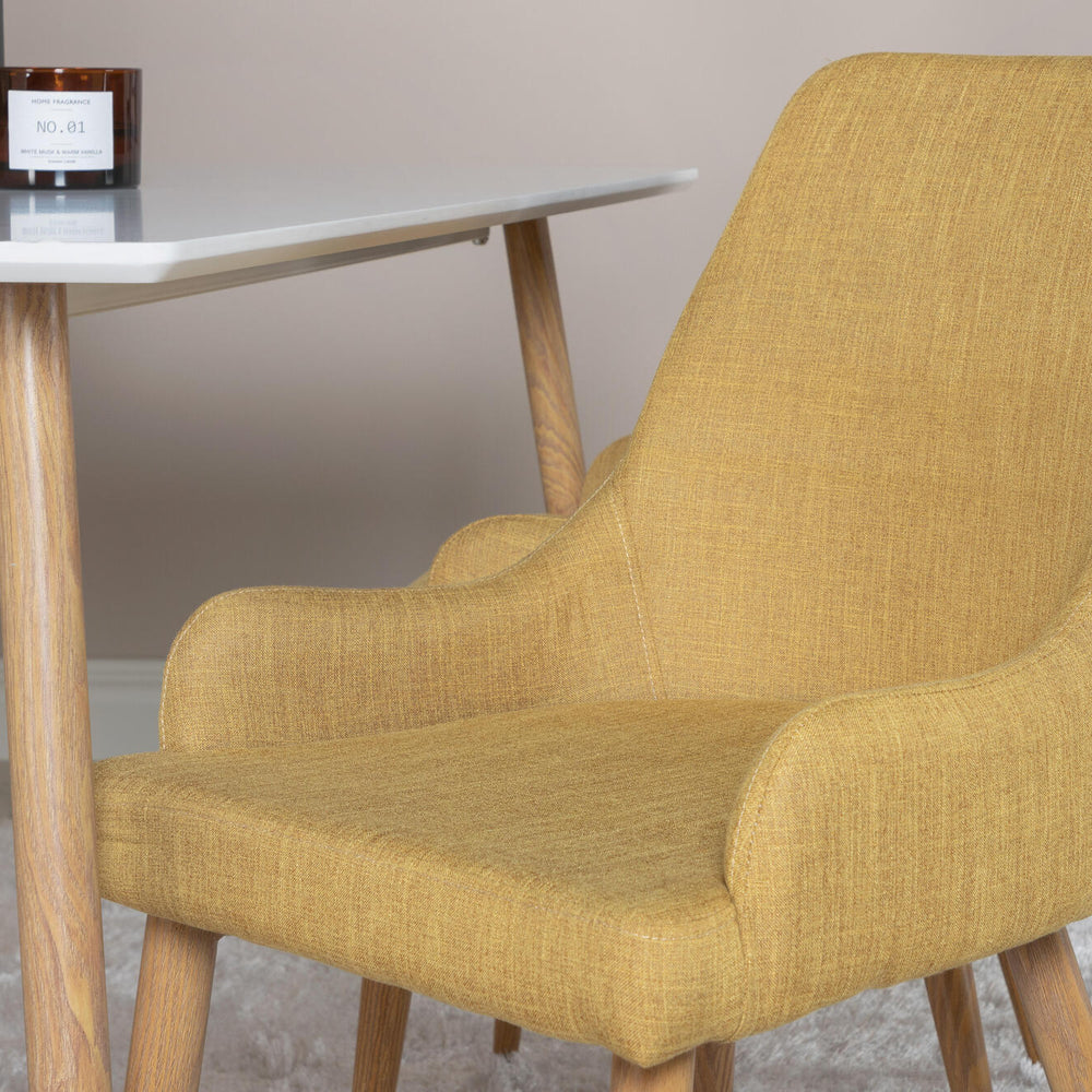 Too oma interjööri soe ja elav sinepikollane toon, mis lisab ruumi energiat ja hubasust. Pehme polsterdus ning tammeimitatsiooniga metalljalad loovad ajatu kombinatsiooni, mis on sama stiilne kui mugav.