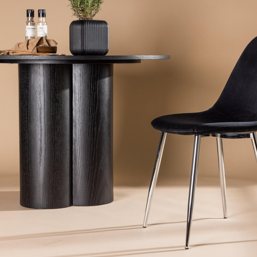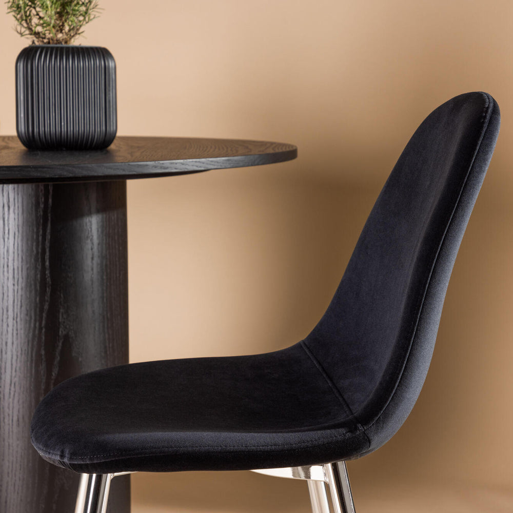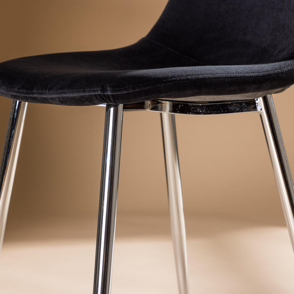 Polar ühendab pehme musta sametkatte, kergelt ümardatud seljatoe ja istme, pakkudes elegantset ning ülimalt mugavat istumiskogemust. Kroomitud metalljalad lisavad modernse ja stiilse puudutuse, muutes tooli tõeliseks pilgupüüdjaks sinu söögitoas.