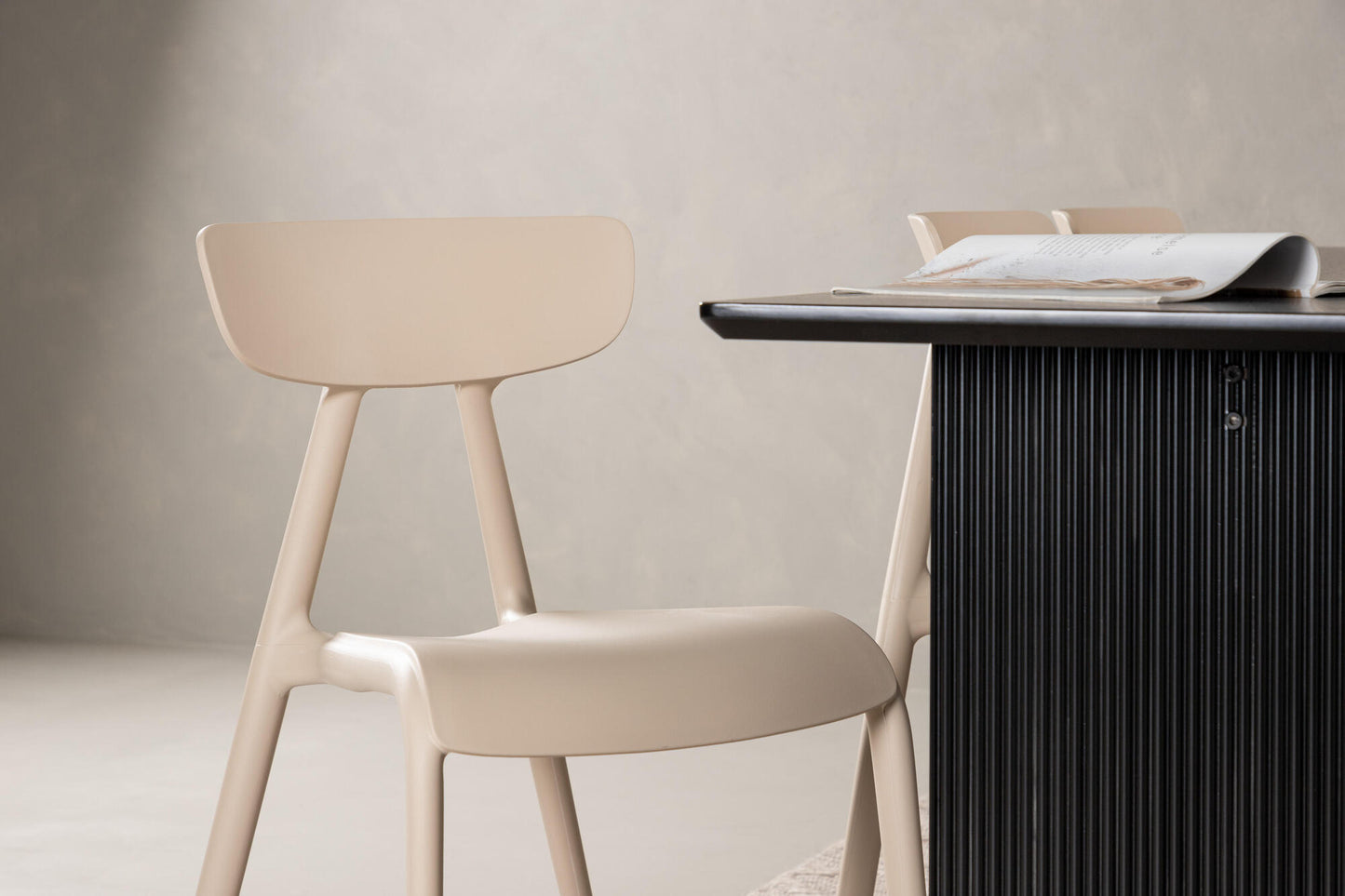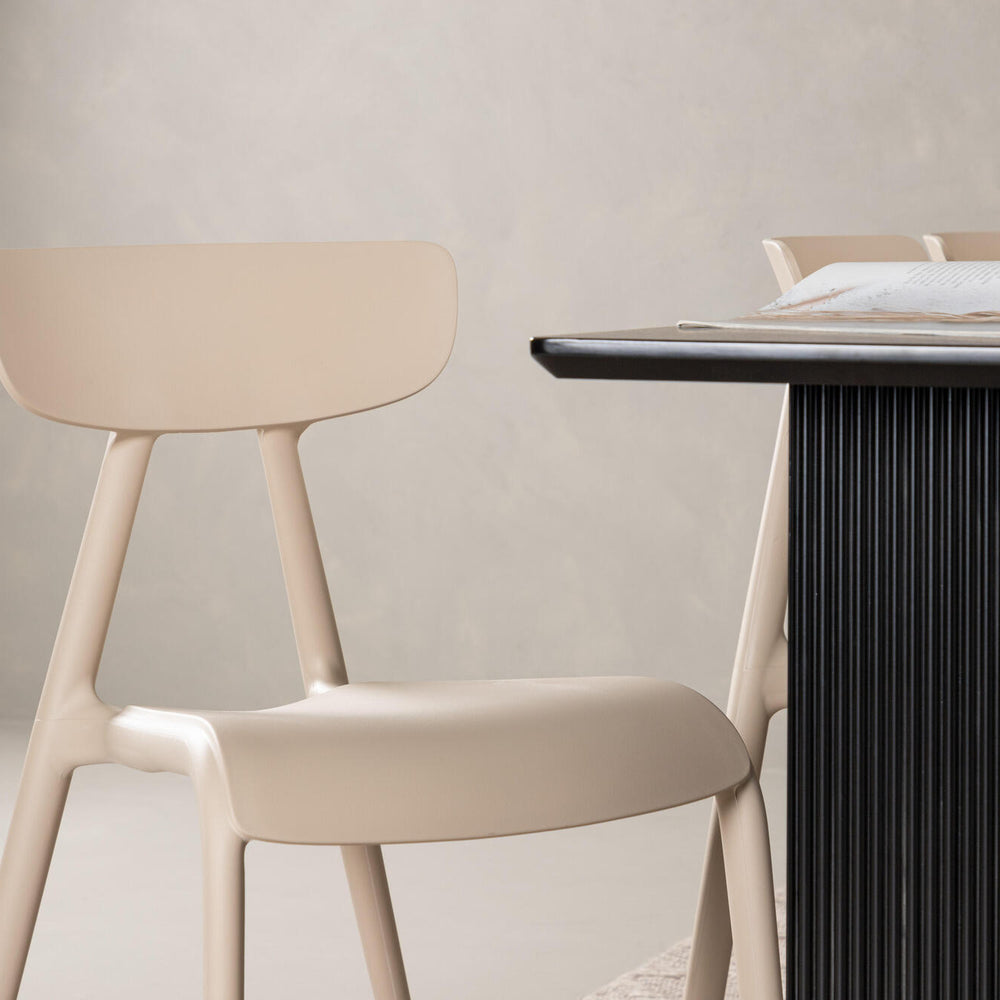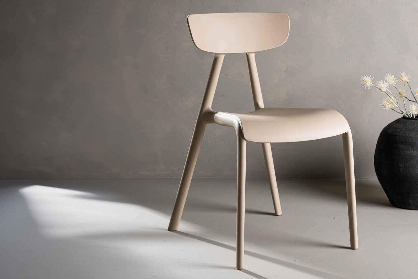 Need stiilsed ja vastupidavast plastist valmistatud toolid on kaunilt beeži tooni, mis sobitub hõlpsasti muu sisustusega. Kergelt sügavam iste, kaunis seljatugi ja skandinaavialiku disainiga kergelt väljapoole kaldu jalad loovad ajatu ja elegantse ilme.
