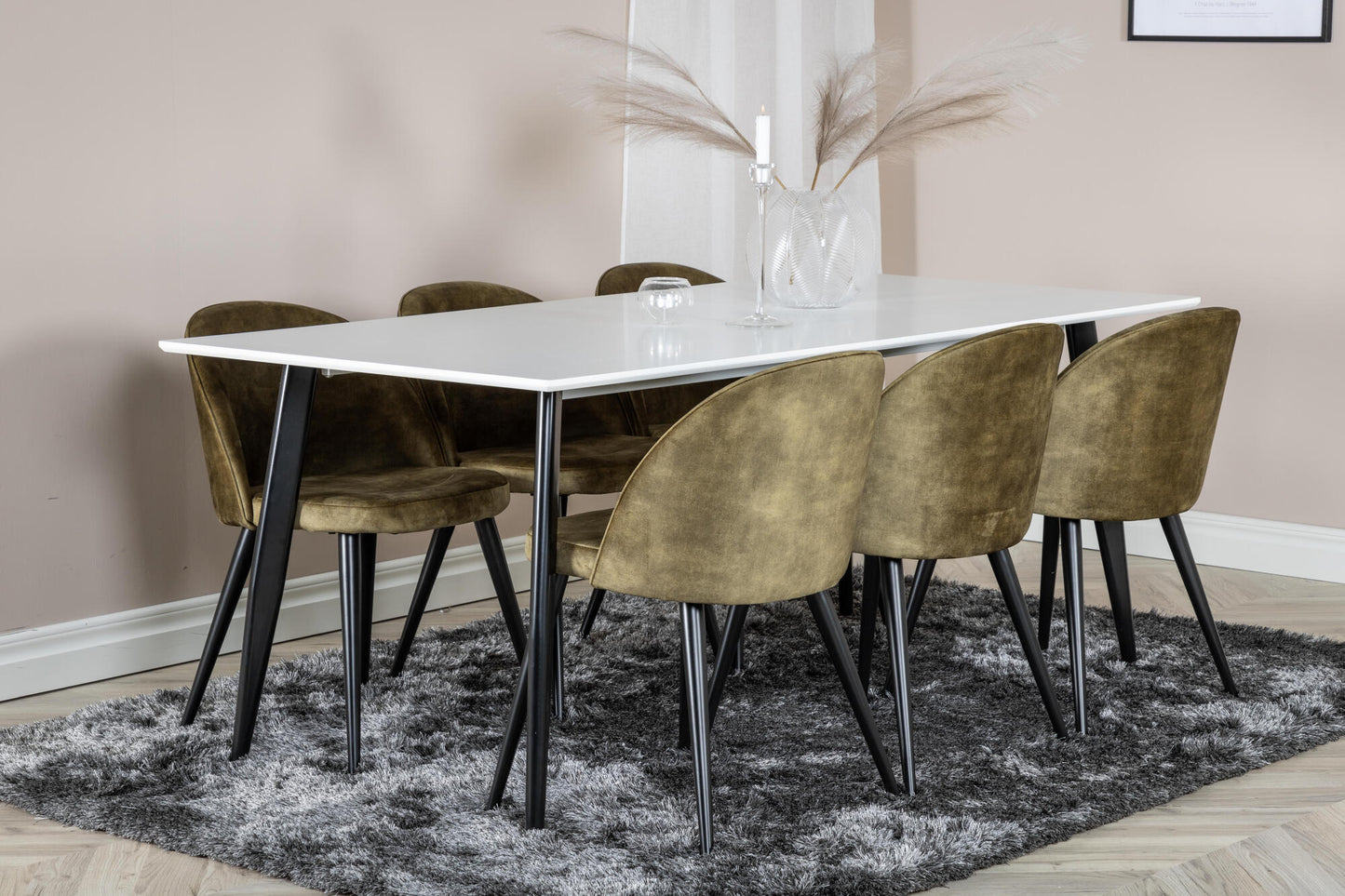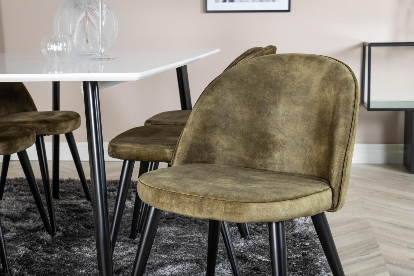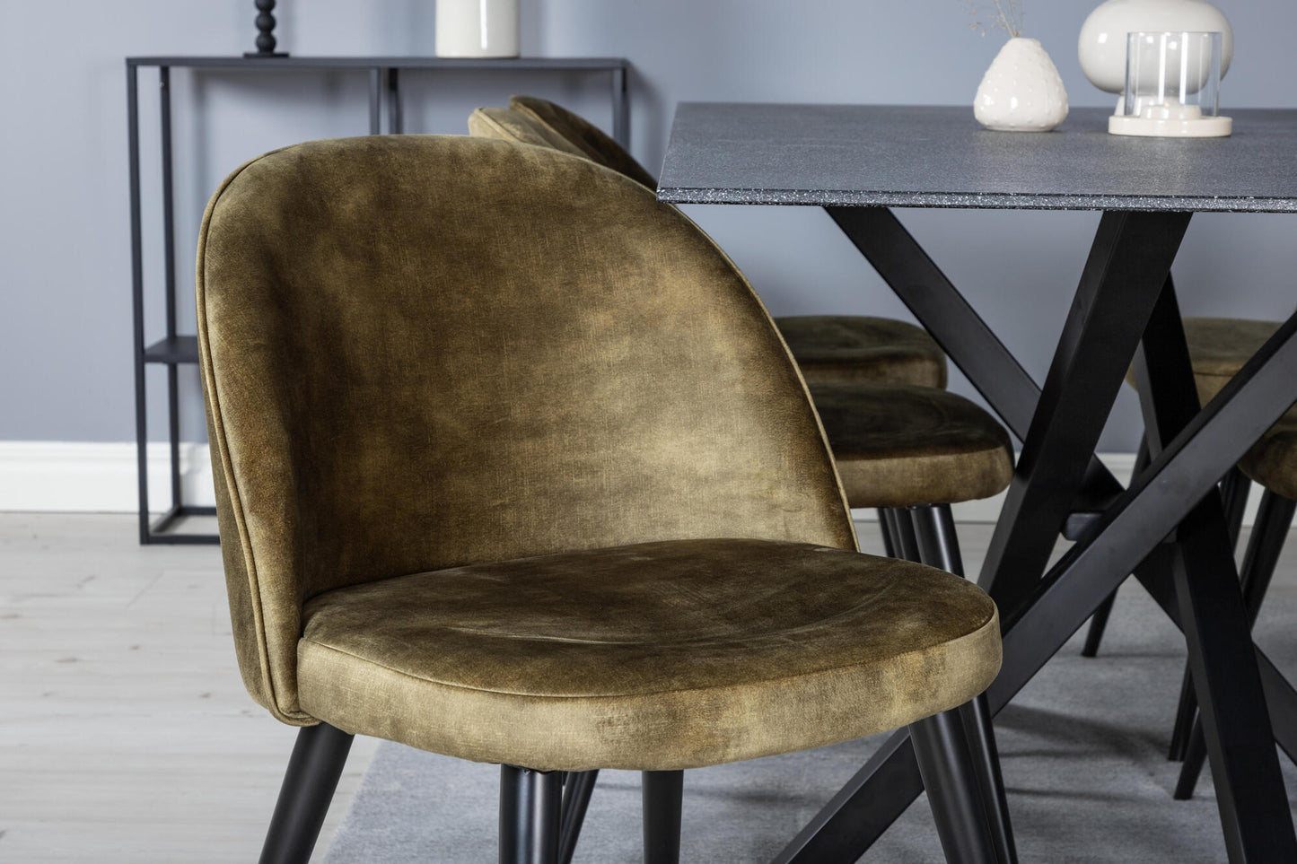 Loo oma koju rahulik ja elegantne õhkkond Velvet sarja oliiviroheliste söögitoolidega.
