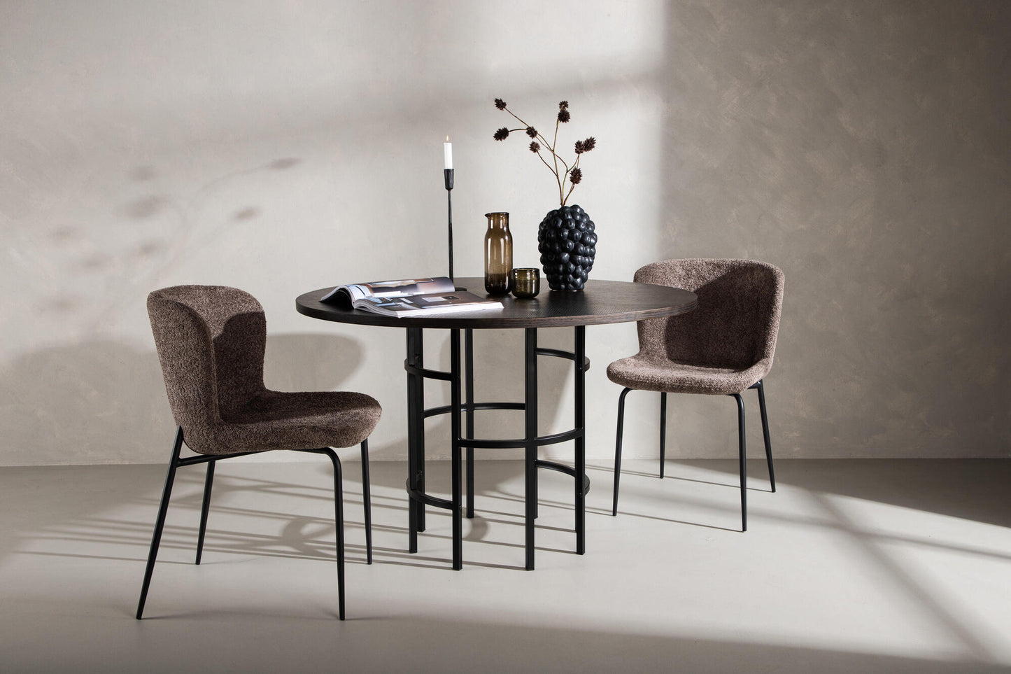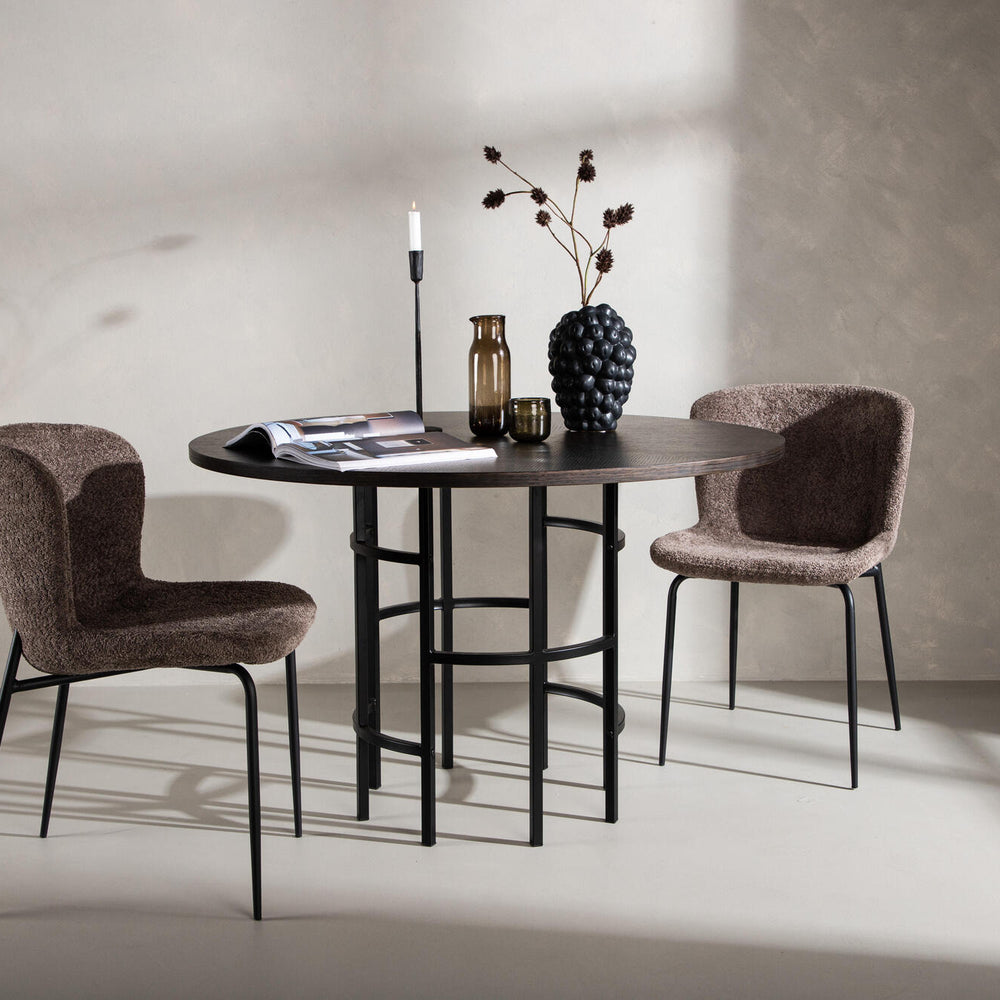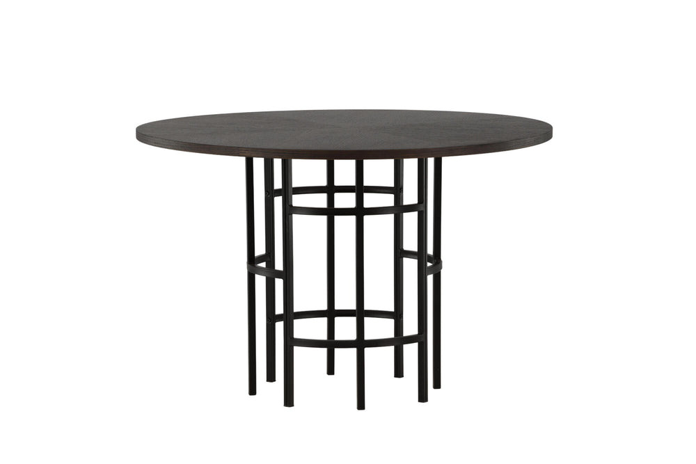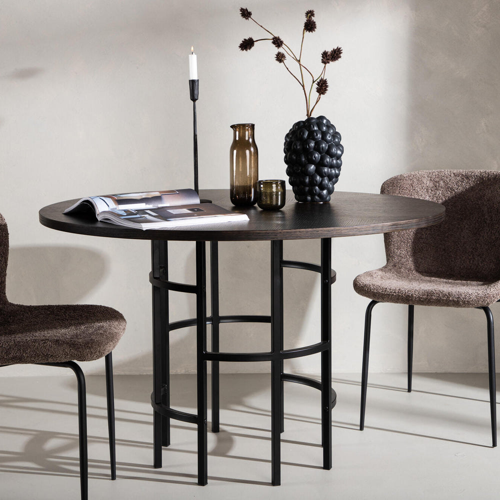 Too oma koju stiilne ja ajatu Copenhageni ümmargune söögilaud, mis ühendab kauni pruuni MDF-lauaplaadi ja silindrikujulise musta metallist lauajala.