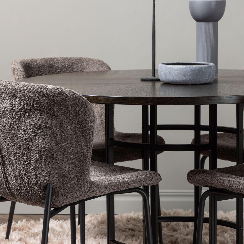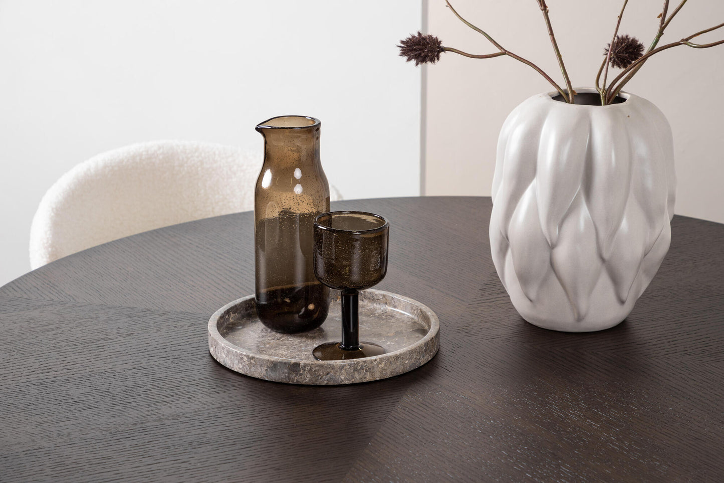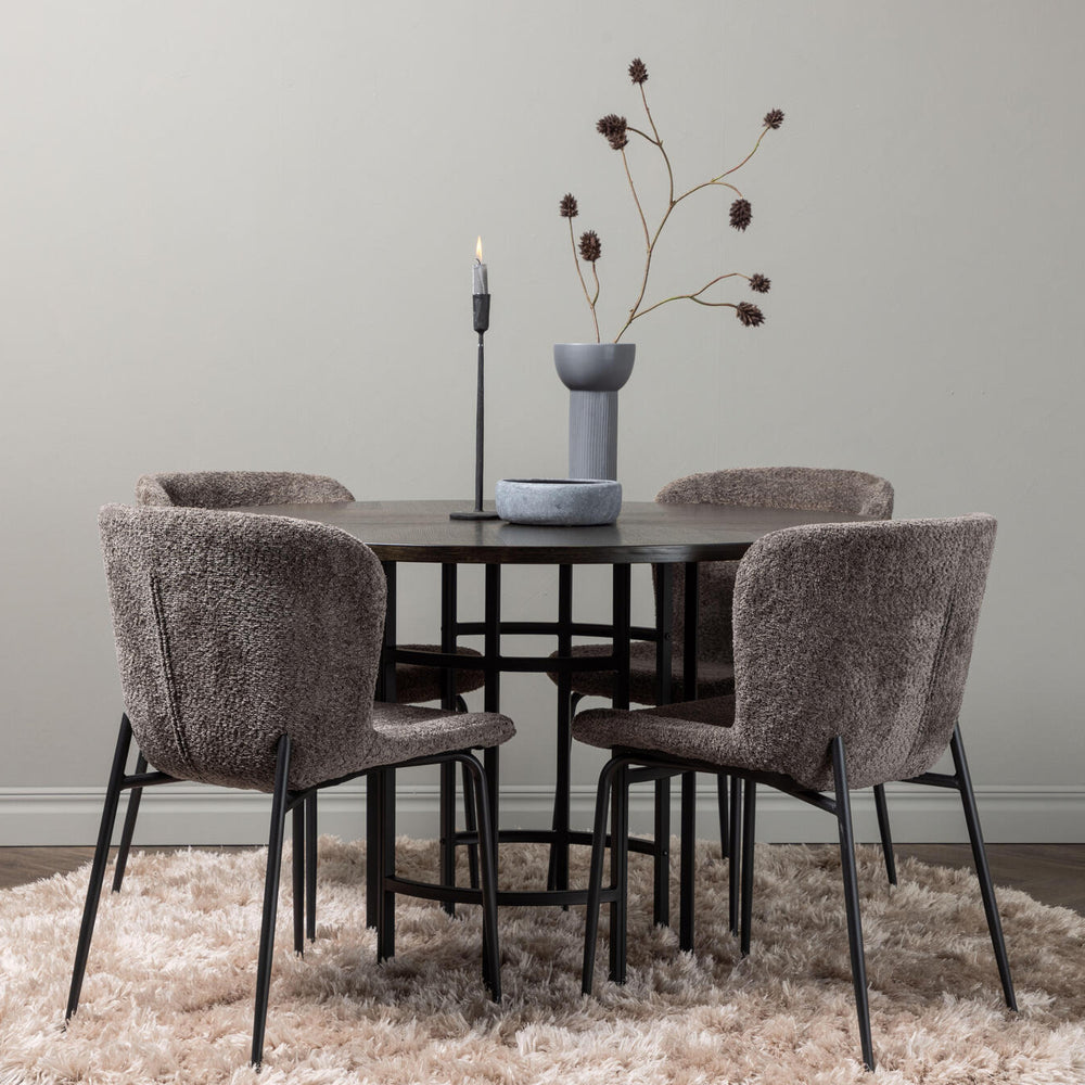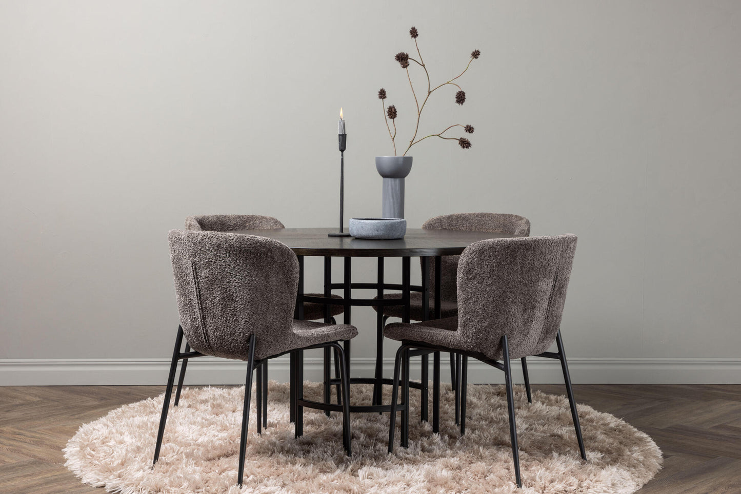 Too oma koju stiilne ja ajatu Copenhageni ümmargune söögilaud, mis ühendab kauni pruuni MDF-lauaplaadi ja silindrikujulise musta metallist lauajala.